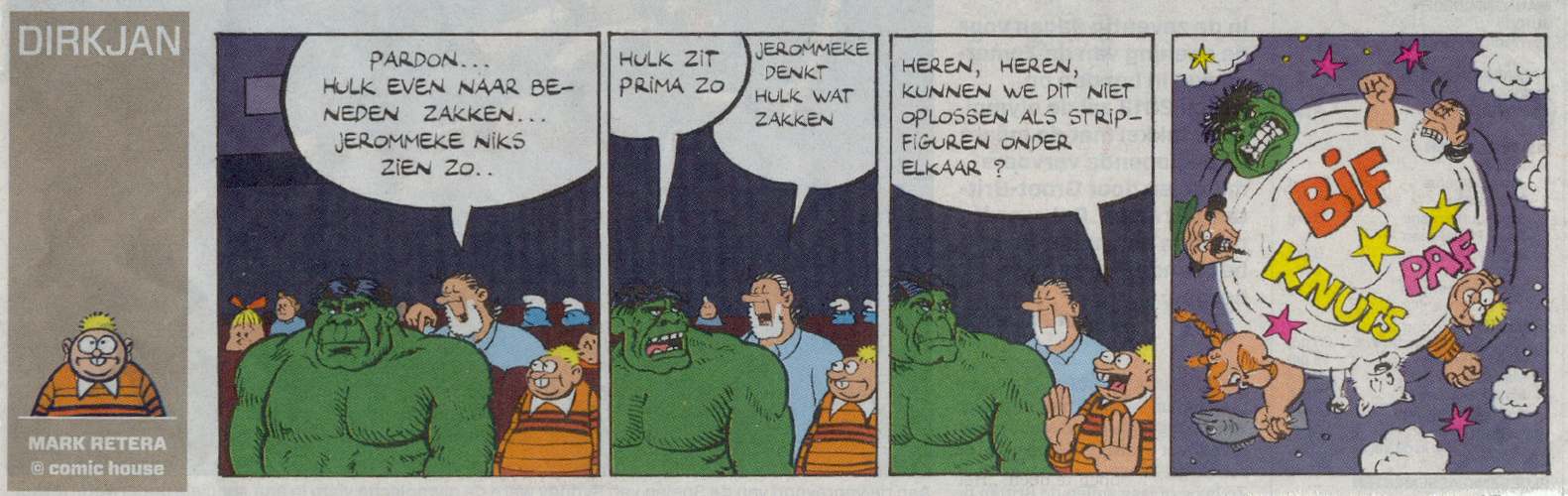 Bin ich mir nicht so sicher - Freunde von mir haben in den Niederlanden studiert, einen regen Austausch auch mit niederländischen Kommilitonen gehabt - und in deren WG lagen ausser deutschsprachigen Comics auf niederländisch eigentlich nur die auch hier bekannten frankobelgischen wie Asterix, LL oder Guust (Gaston Lagaffe) herum. Originale niederländische Comics sind mir dort bei meinen reichlichen Besuchen eigentlich nie aufgefallen.
