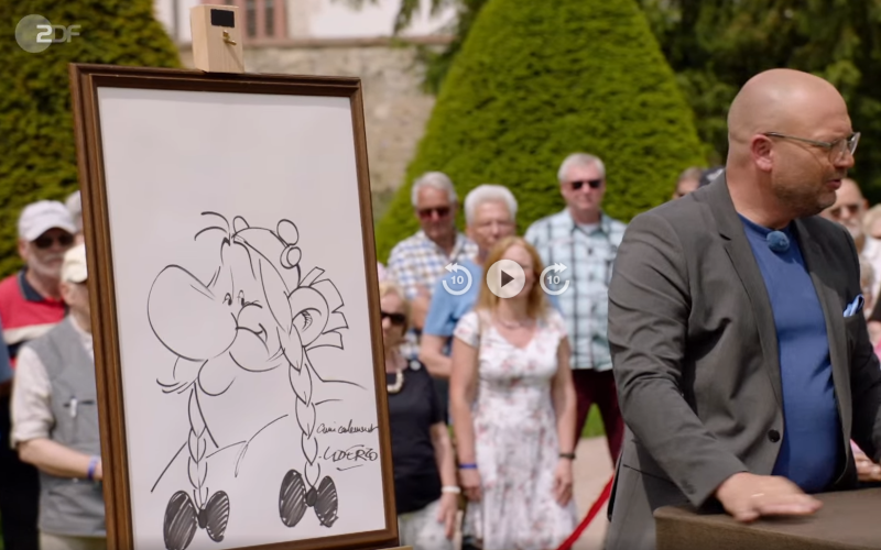 in der Sendung Bares für Rares XXL vom 28. Juni 2023 wurde von einem Schauspieler eine von Uderzo signierte Obelix-Zeichnung vorgestellt. Der Vater des Schauspielers hatte anlässlich eines Festessens die Zeichnung bekommen. Die Expertenschätzung lag bei 3.500 - 4.000 Euro. Am Ende ging das gute Stück für 5.600 Euro an einen Händler. Die Sendung ist in der ZDFmediathek abrufbar.