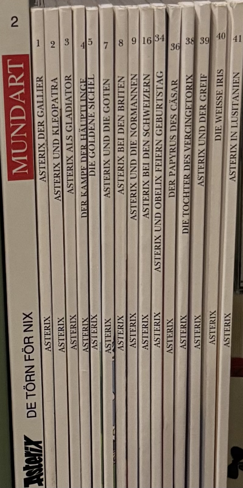 Asterix ist ein schönes Hobby. Sieh zu, dass Du alle Bände nach und nach mal liest und im Idealfall auch in Deine Sammlung aufnimmst. Ich habe sie z.B. alle als Kind in unserer Stadtbibliothek gelesen, zusätzlich ein paar schenken lassen oder vom Taschengeld gekauft - die mir fehlenden Bände (-> gelesen und somit bekannt, aber eben in der Bücherei und somit nie gekauft) aber erst im Erwachsenenalter nachgekauft.
